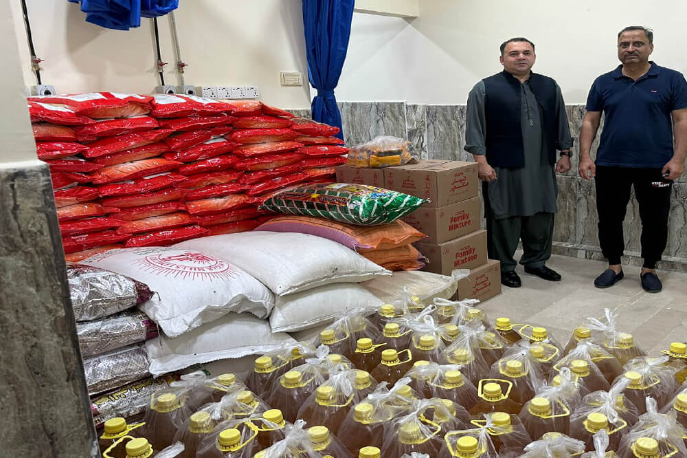 Chairman GPA is presenting a donation cheque to the president of IZM Armaan Pasni